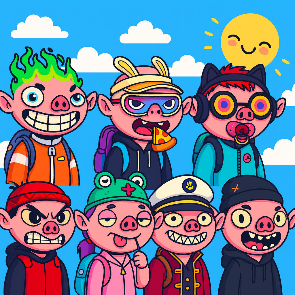 Piggybar is a community-driven NFT art collection featuring 2,357 unique half-body pig characters—each rocking ridiculous outfits, oversized snacks, and personalities too big to stay inside a traditional piggy bank.We call them “pigs with zero financial discipline.”